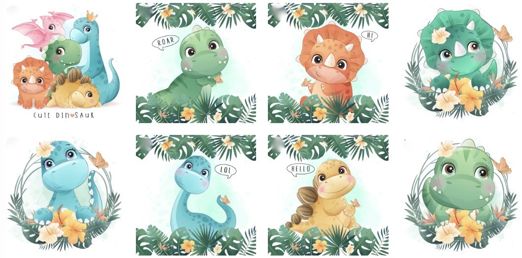 Ensemble de 8 coupons 13X13 CUTE DINOSAURES JUNGLE à coudre pour lingettes