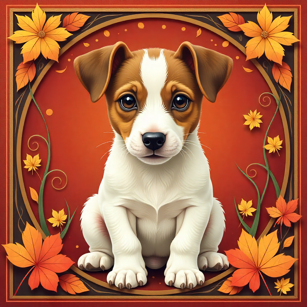 COUPON CHIOT JACK RUSSEL FEUILLES AUTOMNE 20X20 - tissu 100% coton