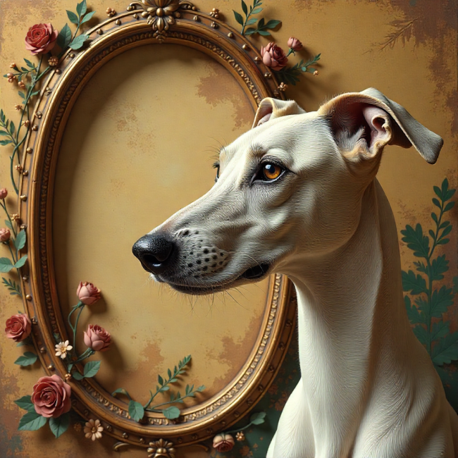 COUPON LEVRIER BEIGE CADRE OVAL 20X20 - tissu 100% coton