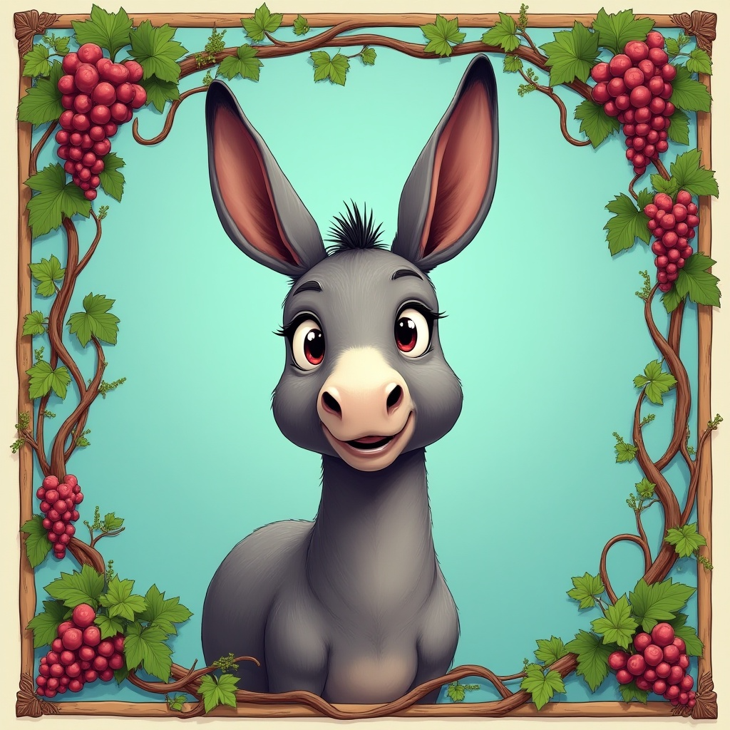 COUPON PETIT ANE GRIS CARTOON GRAPPES RAISINS DE FACE 20X20 - tissu 100% coton