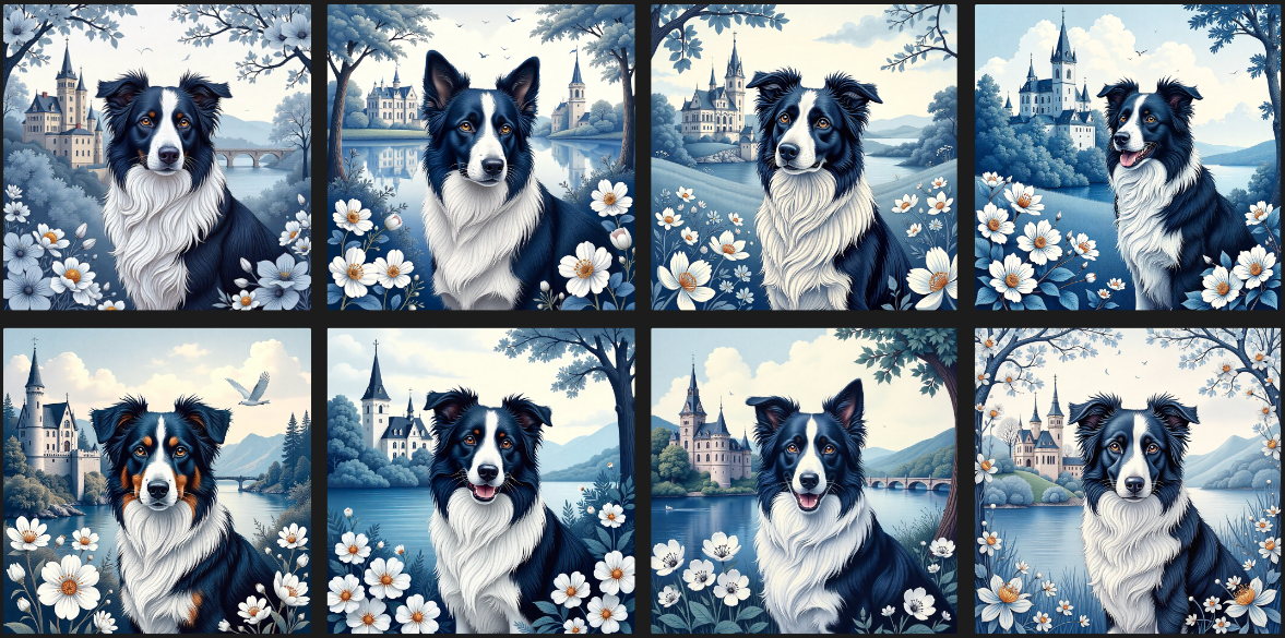 Ensemble de 8 coupons 13X13 BORDER COLLIE DELPHES BLEU à coudre pour lingettes - exclusivité Nadège Tissus