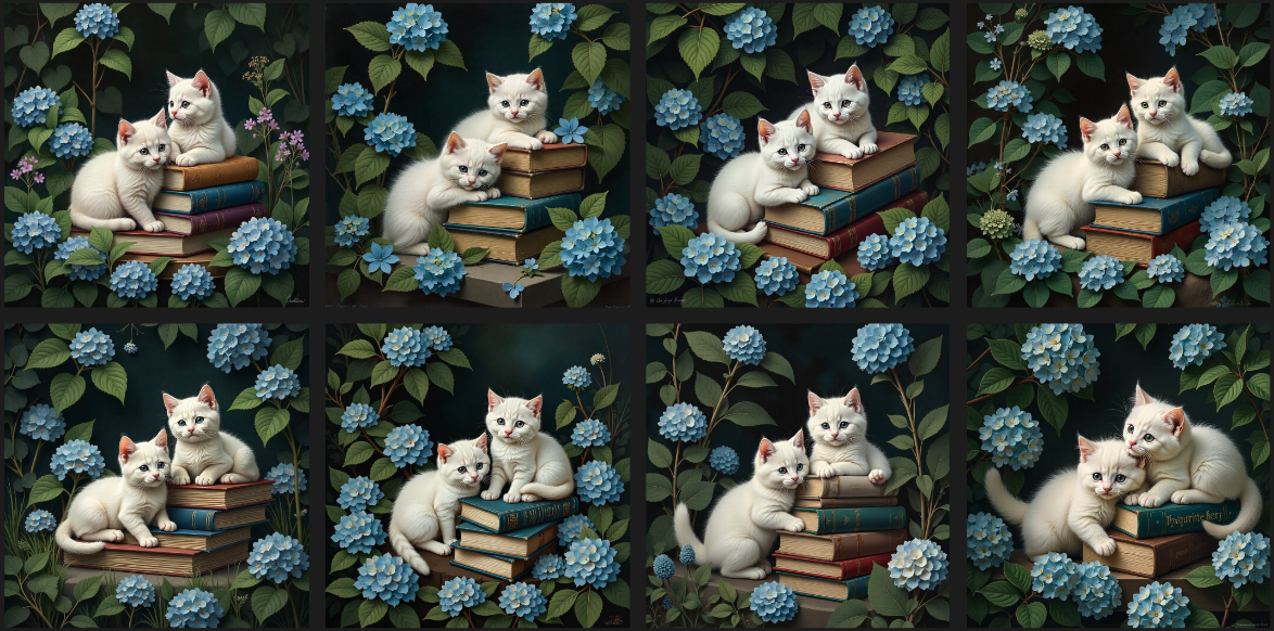 Ensemble de 8 coupons 13X13 CHATONS BLANCS HORTENSIAS BLEUS à coudre pour lingettes - exclusivité Nadège Tissus