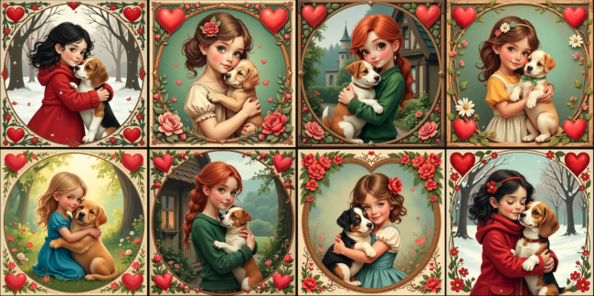 Ensemble de 8 coupons 13X13 CALINS FILLETTES MODELES CHIOTS à coudre pour lingettes - exclusivité Nadège Tissus
