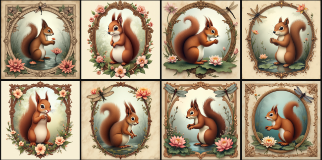 Ensemble de 8 coupons 13X13 ECUREUILS LIBELLULES ET NENUPHARS à coudre pour lingettes - exclusivité Nadège Tissus