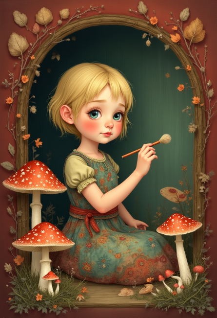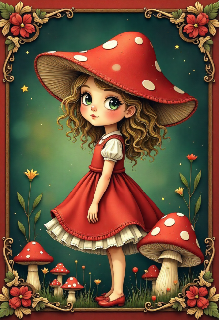 COUPON ELFE TRESSES ROUSSES DE FACE ET CHAMPIGNONS BEIGES 16X23 - tissu 100% coton