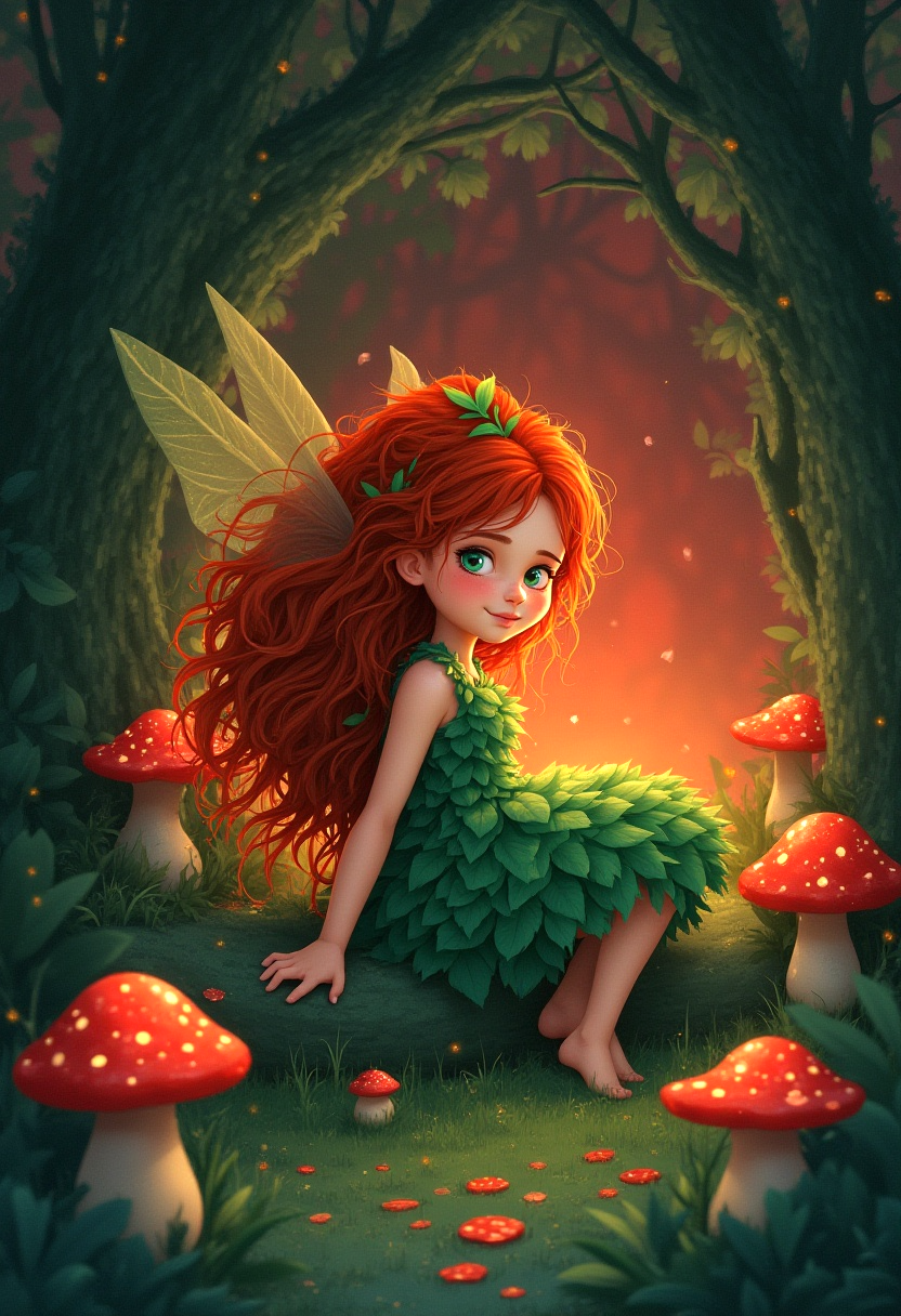 COUPON FEE DES CHAMPIGNONS ROBE EN FEUILLES VERTES 16X23 - tissu 100% coton