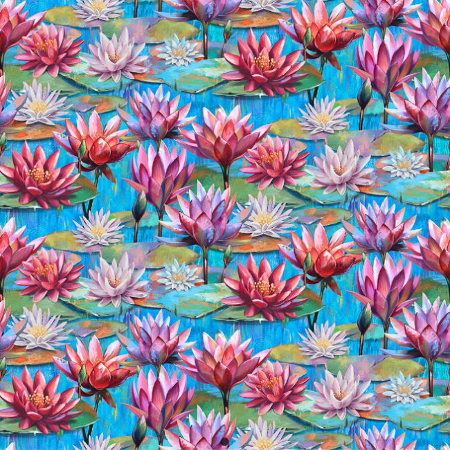 Lotus, conçu par Tim Parker pour Northcott Fabrics, est une célébration vibrante de l'élégance de la nature, présentant de magnifiques fleurs de lotus, des nénuphars flottants.