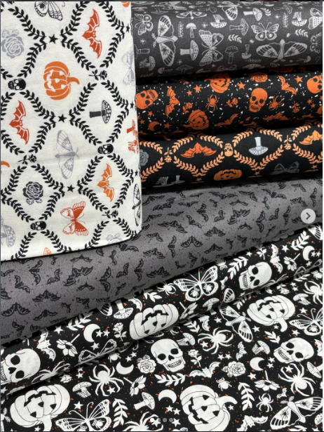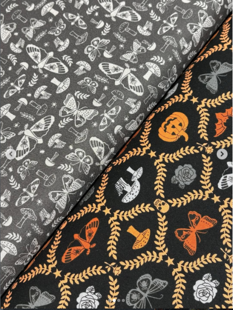 Des mélangeurs tachetés en orange, noir et blanc ajoutent de la texture et de l'intérêt en arrière-plan. Avec des motifs de grande, moyenne et petite taille qui se marient parfaitement, Goth Gardens vous fera frissonner d'anticipation.