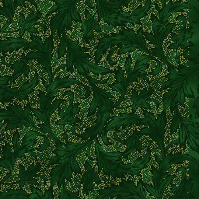 Tissu DAMAS ACANTHE HOLIDAY WISHES VERT avec metallique or - Hoffman Fabrics