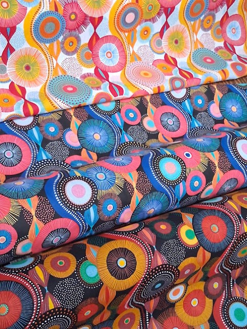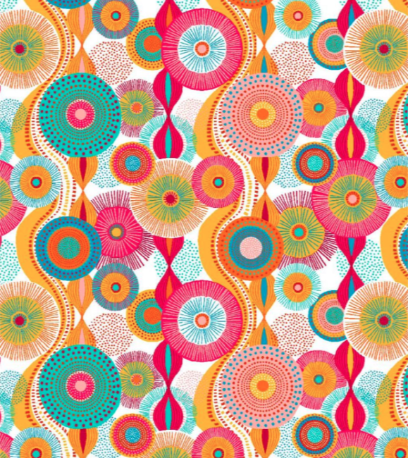 Les motifs de cercles qui ornent ce tissu s’inspirent des célèbres motifs du wax africain, apportant une touche vibrante et dynamique. Les cercles, de différentes tailles et couleurs, créent un effet visuel captivant, évoquant la richesse culturelle et l’artisanat traditionnel. Les teintes font de ce tissu un choix parfait pour des créations originales et modernes.