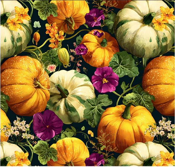 Velours manille JARDIN DE CITROUILLES ORANGES VERTES