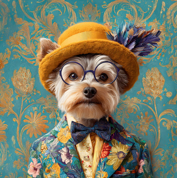 Carré YORKSHIRE LUNETTES ET COSTUME FOND TURQUOISE - Velours Manille