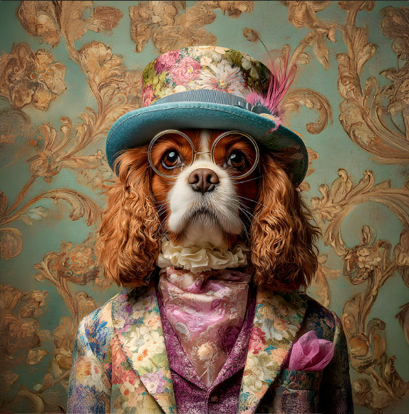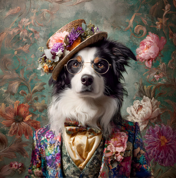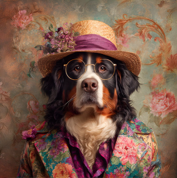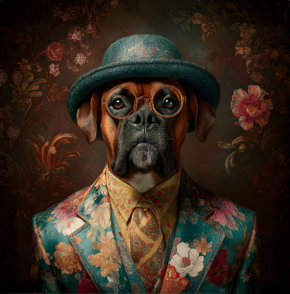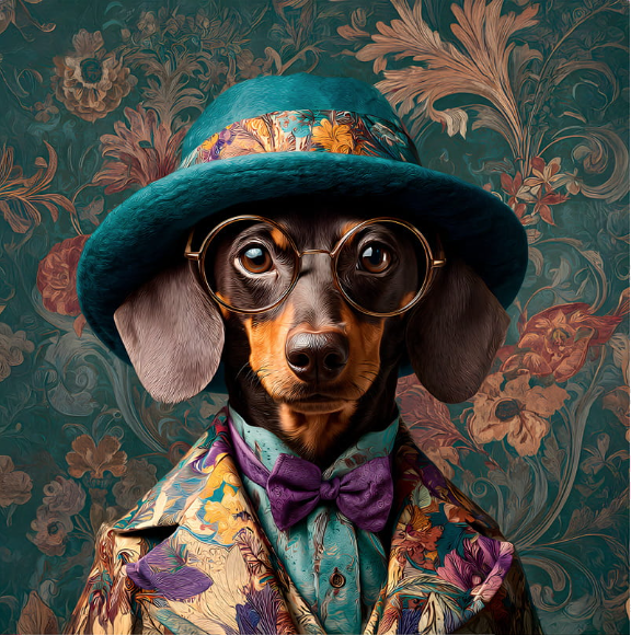 Carré TECKEL NOIR FEU LUNETTES ET COSTUME FOND CANARD - Velours Manille