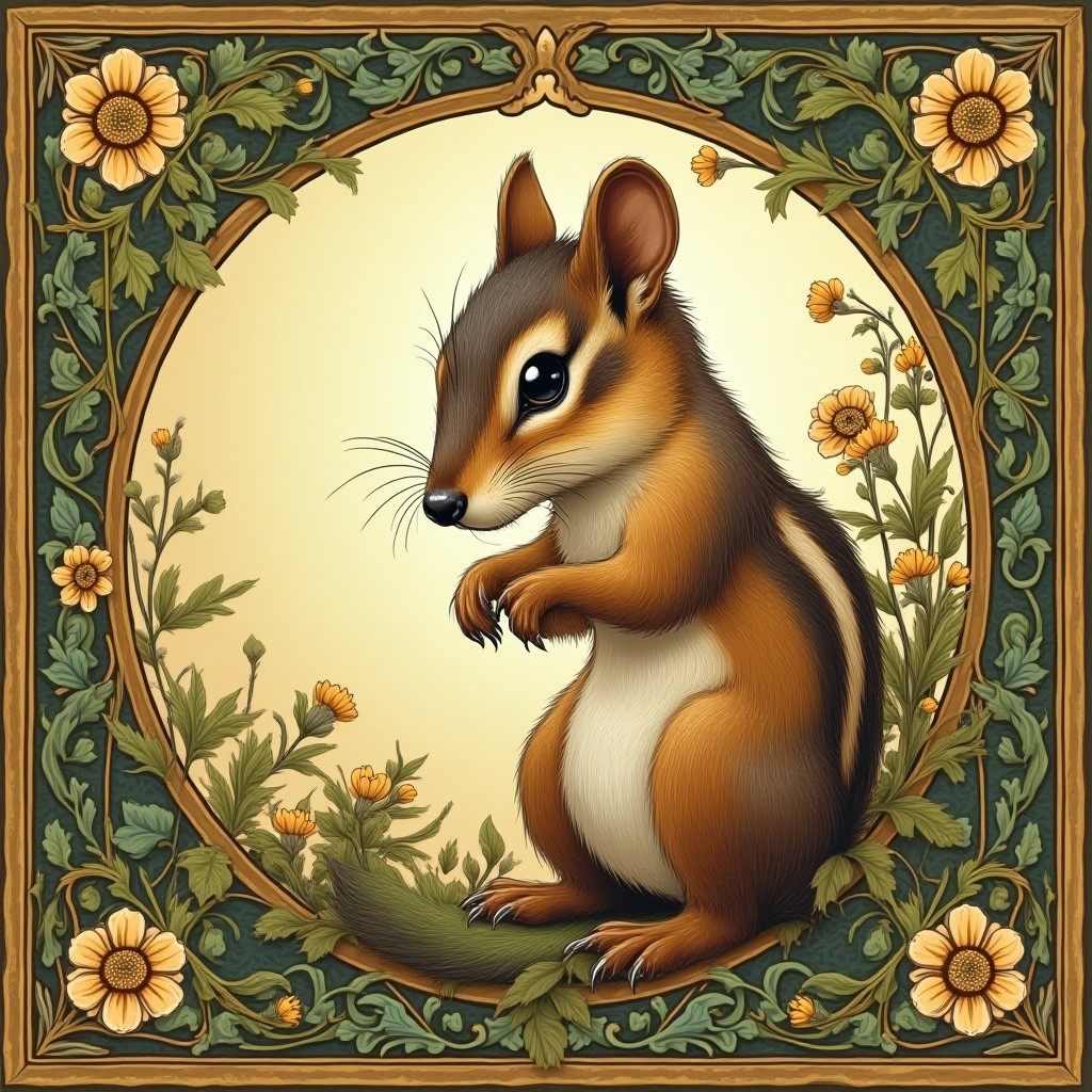 COUPON CHIPMUNK CADRE ART NOUVEAU FLORAL VERT 20X20 - tissu 100% coton