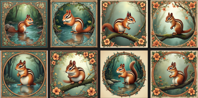 Ensemble de 8 coupons 13X13 CHIPMUNKS ART NOUVEAU VERT à coudre pour lingettes - exclusivité Nadège Tissus