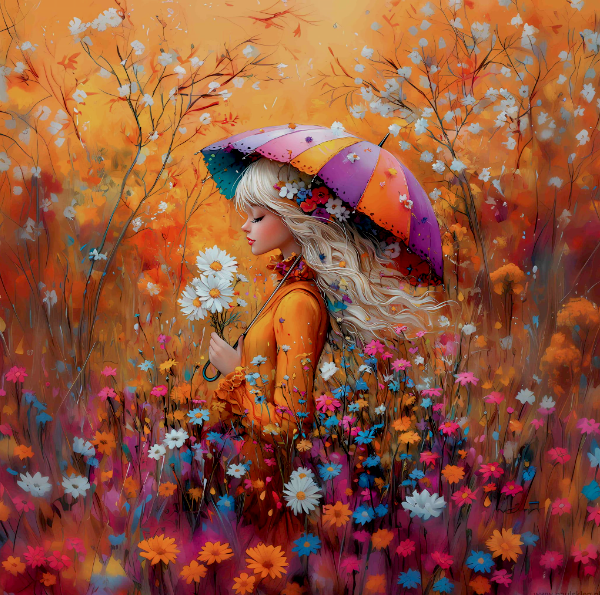 Carré BLONDE AU PARAPLUIE 20X20 - polyester IMPERMEABLE