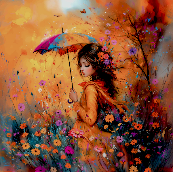 Carré BRUNE AU PARAPLUIE 20X20 - polyester IMPERMEABLE