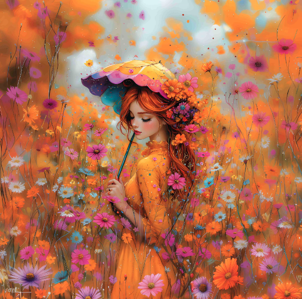Carré ROUSSE AU PARAPLUIE 20X20 - polyester IMPERMEABLE