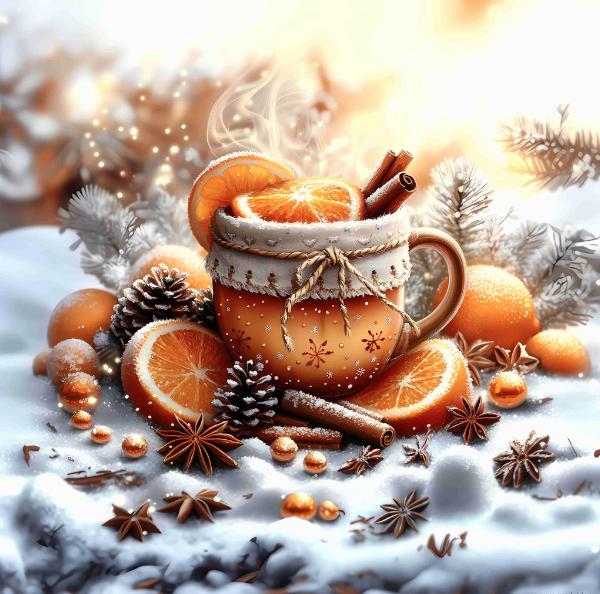Carré TASSE GROG ORANGES - Polyester imperméable