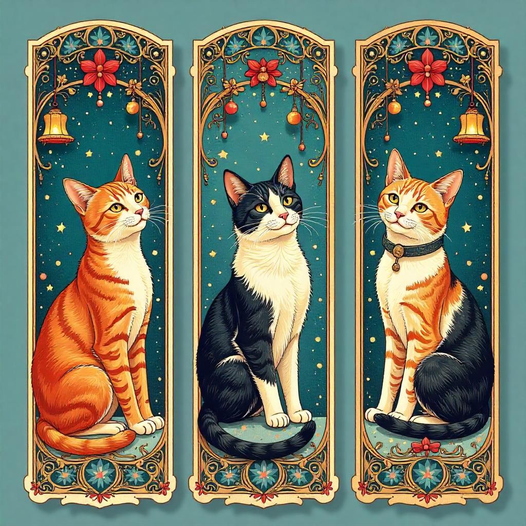 COUPON SIGNETS NOEL TRIO CHATS CLOCHES EN HAUT FOND CANARD 20X20 - tissu 100% coton