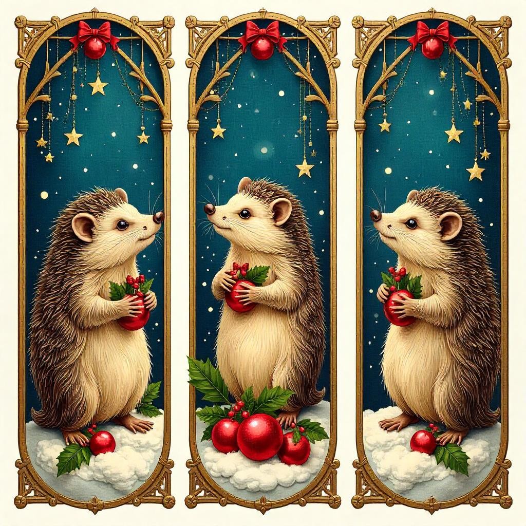 COUPON SIGNETS NOEL TRIO HERISSONS FOND TEAL 20X20 - tissu 100% coton