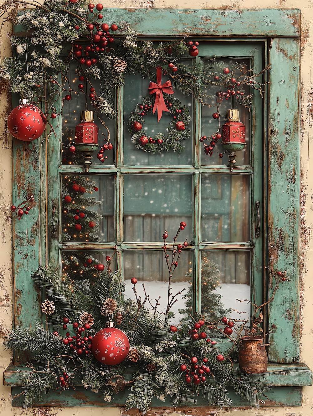COUPON NOEL JUNK FENETRE 16X21 - tissu 100% coton