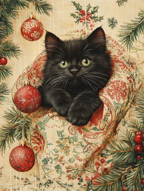 COUPON NOEL JUNK CHAT COUVERTURE 16X21 - tissu 100% coton