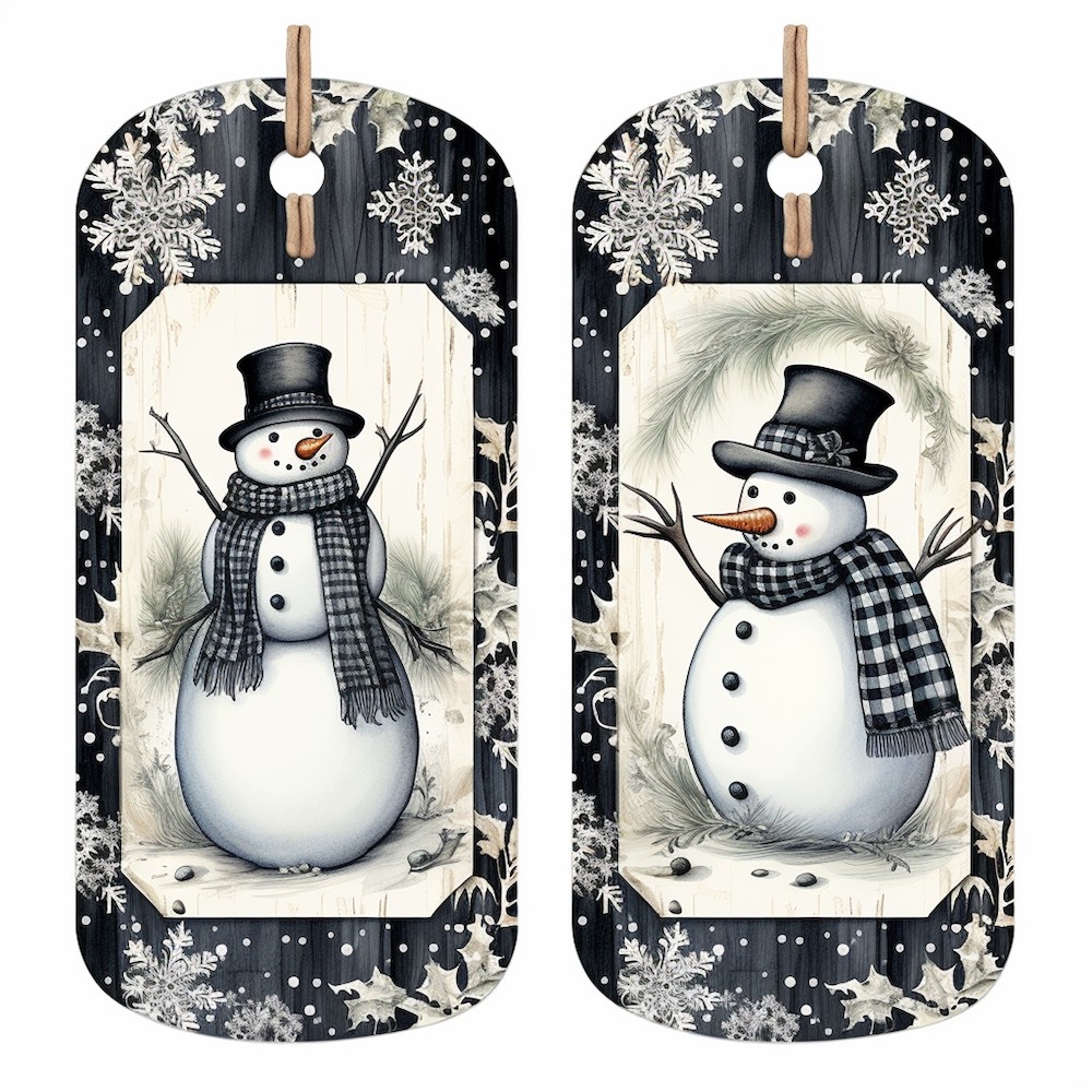 COUPON SIGNETS DUO BONHOMMES DE NEIGE FLOCONS 20X20 - tissu 100% coton