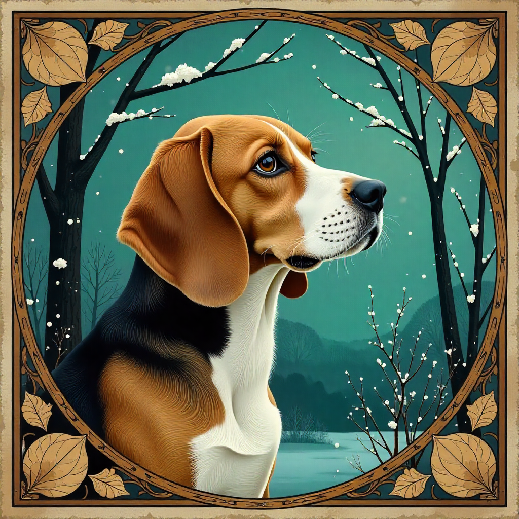 COUPON BEAGLE HIVER CADRE FEUILLES FOND CANARD 20X20 - tissu 100% coton