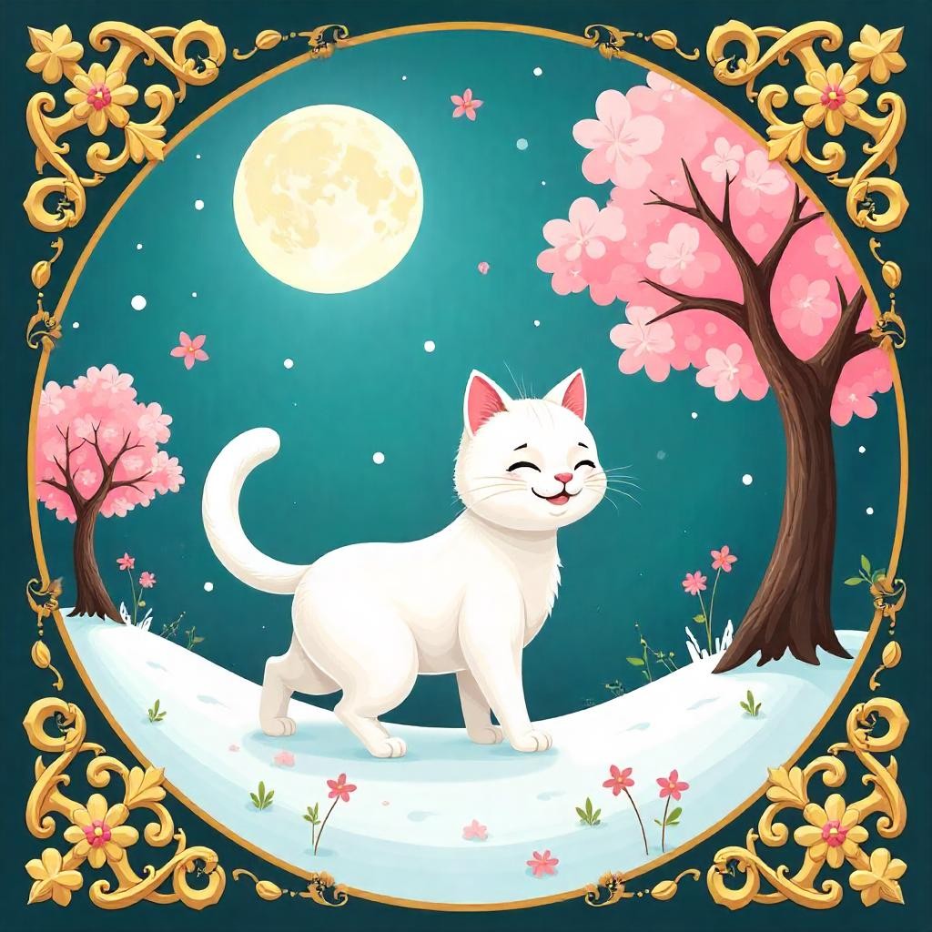 COUPON CHAT BLANC HEUREUX DE MARCHER DANS LA NEIGE CANARD 20X20 - tissu 100% coton