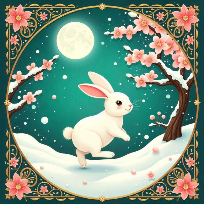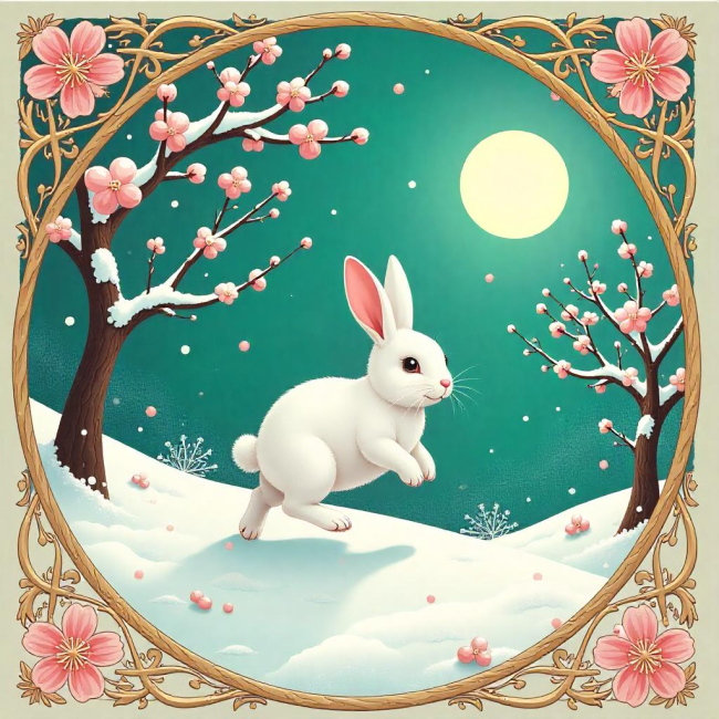 COUPON LAPIN BLANC USAGI NEIGE LUNE A GAUCHE 20X20 - tissu 100% coton