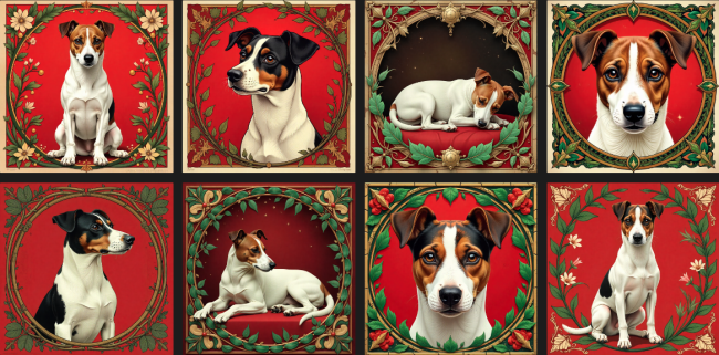 Ensemble de 8 coupons 13X13 CHIENS DE NOEL FOND VERT à coudre pour lingettes - exclusivité Nadège Tissus