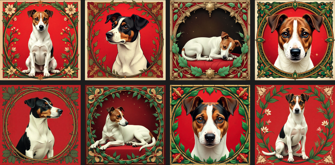 Ensemble de 8 coupons 13X13 JACK RUSSEL ROUGE VERT à coudre pour lingettes - exclusivité Nadège Tissus