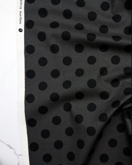 Les tissus coordonnés sont des variations des tissus True Colors existants, afin de connecter les tissus et remplir le dégradé de gris. La bande multicolore est de retour à la fois sur un fond gris doux et un gris charbon, et les pois Pom Poms ont été ajoutés à la fête dans une nouvelle version arc-en-ciel pour s'accorder avec les rayures !