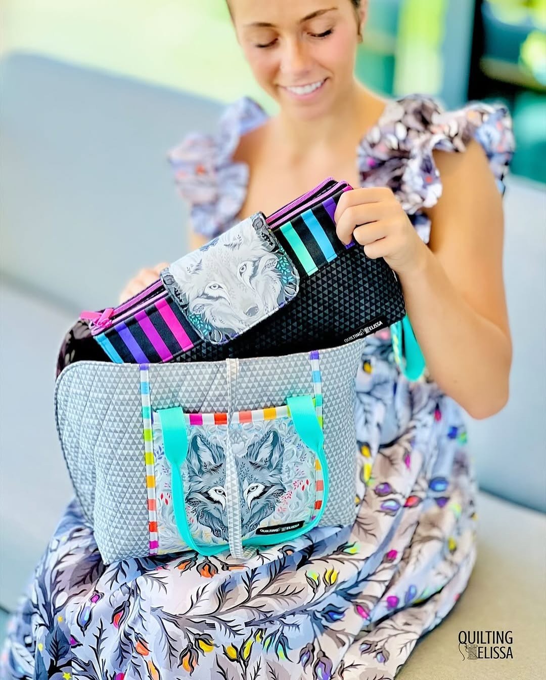 Les tissus coordonnés sont des variations des tissus True Colors existants, afin de connecter les tissus et remplir le dégradé de gris. La bande multicolore est de retour à la fois sur un fond gris doux et un gris charbon, et les pois Pom Poms ont été ajoutés à la fête dans une nouvelle version arc-en-ciel pour s'accorder avec les rayures !