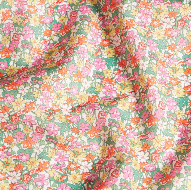 Le véritable tissu Liberty Tana Lawn® est fabriqué à partir de coton égyptien à fibres longues, ce qui lui confère une texture fine, une douceur remarquable et un toucher soyeux.