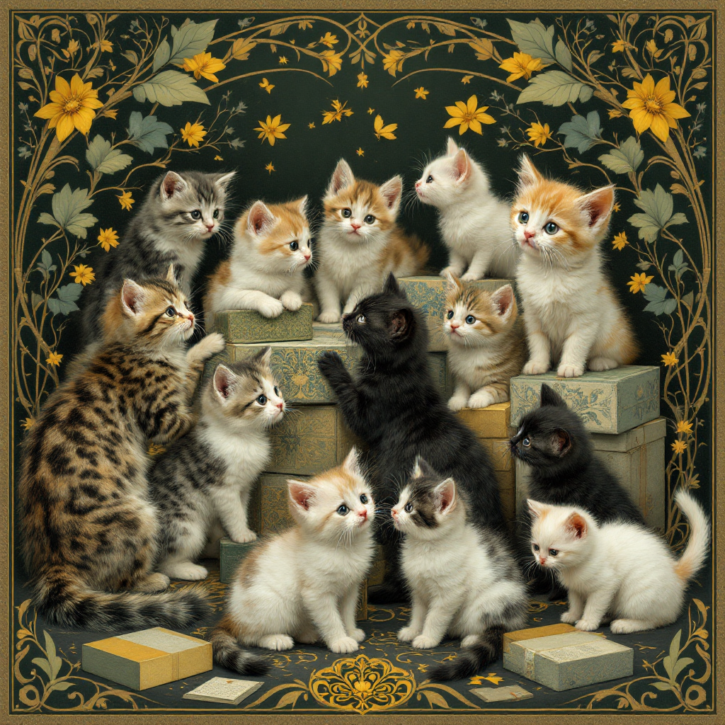 COUPON CHATONS BOITES VERTES ROSACE JAUNE CENTRE BAS 20X20 - tissu 100% coton
