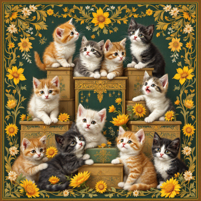 COUPON CHATONS BOITES TOURNESOLS EN BAS 20X20 - tissu 100% coton