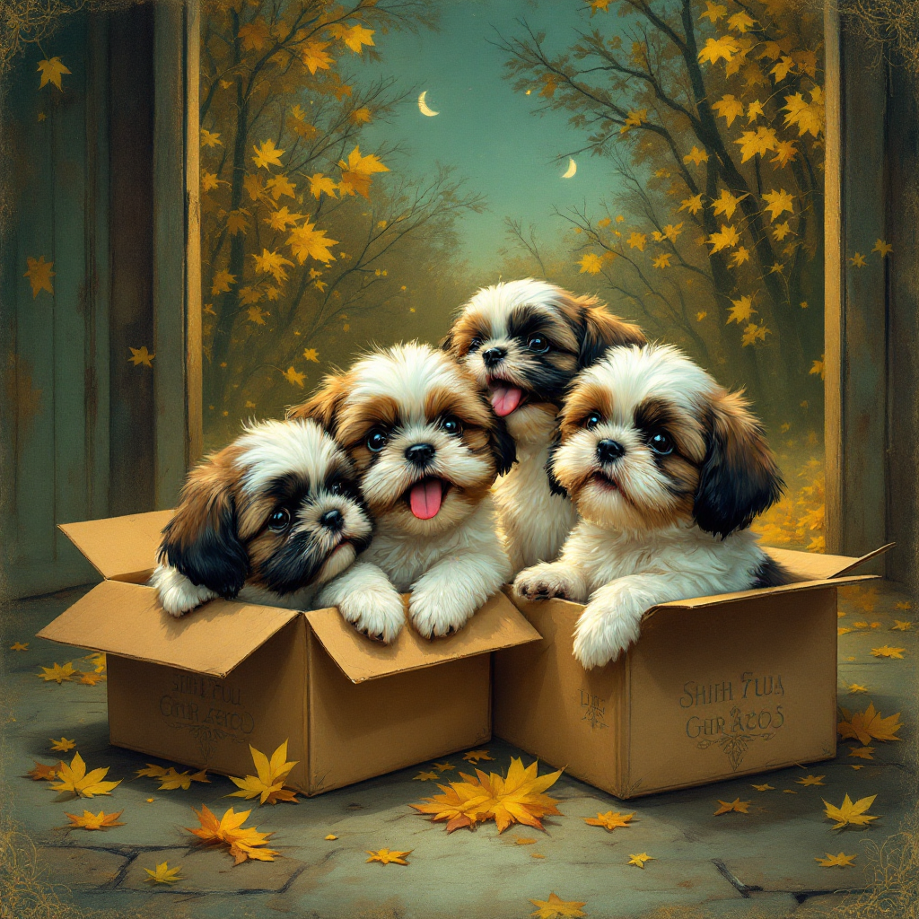 COUPON CHIOTS SHIH TZU CARTONS 20X20 - tissu 100% coton