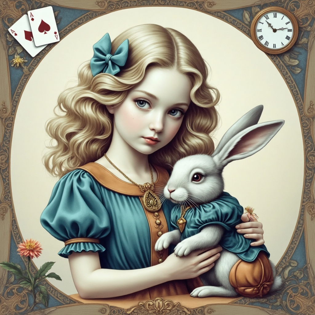 COUPON ALICE LAPIN BLANC EN BLOUSE BLEUE 20X20 - tissu 100% coton