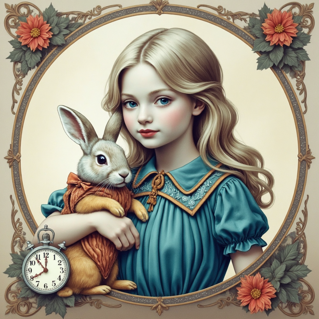 COUPON ALICE LAPIN BLANC AVEC ECHARPE ROUILLE 20X20 - tissu 100% coton