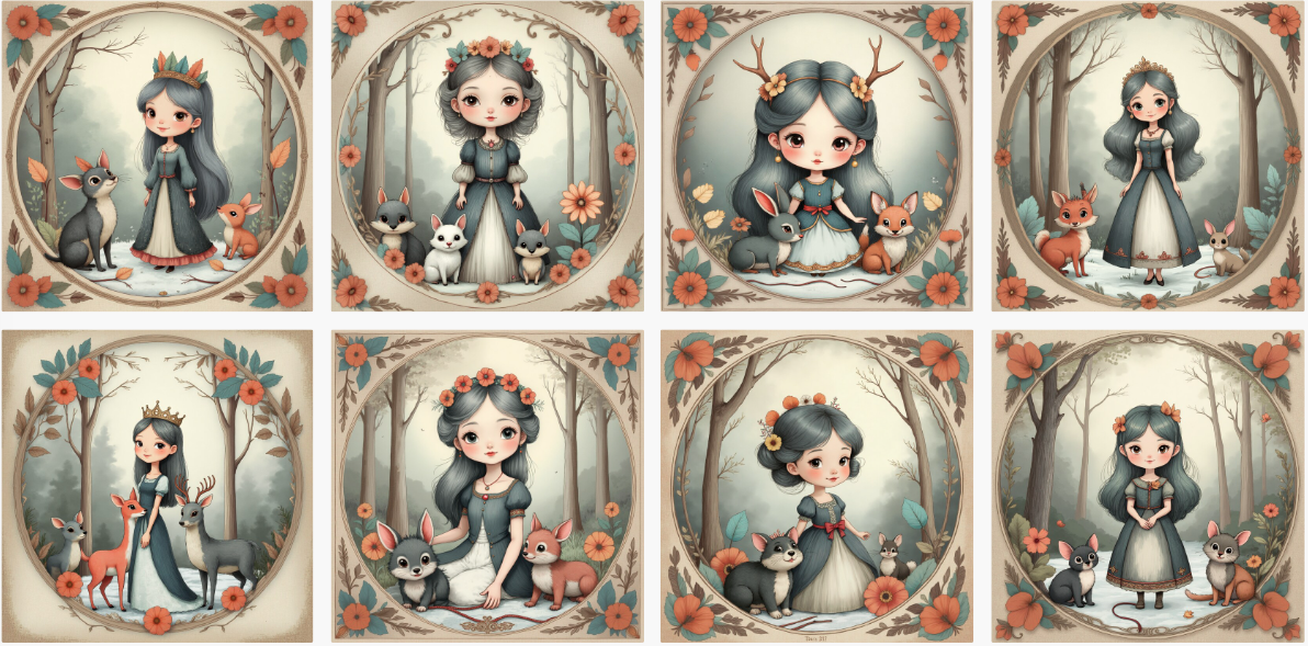 Ensemble de 8 coupons 13X13 PRINCESSE DES ANIMAUX DES BOIS BEIGE à coudre pour lingettes - exclusivité Nadège Tissus