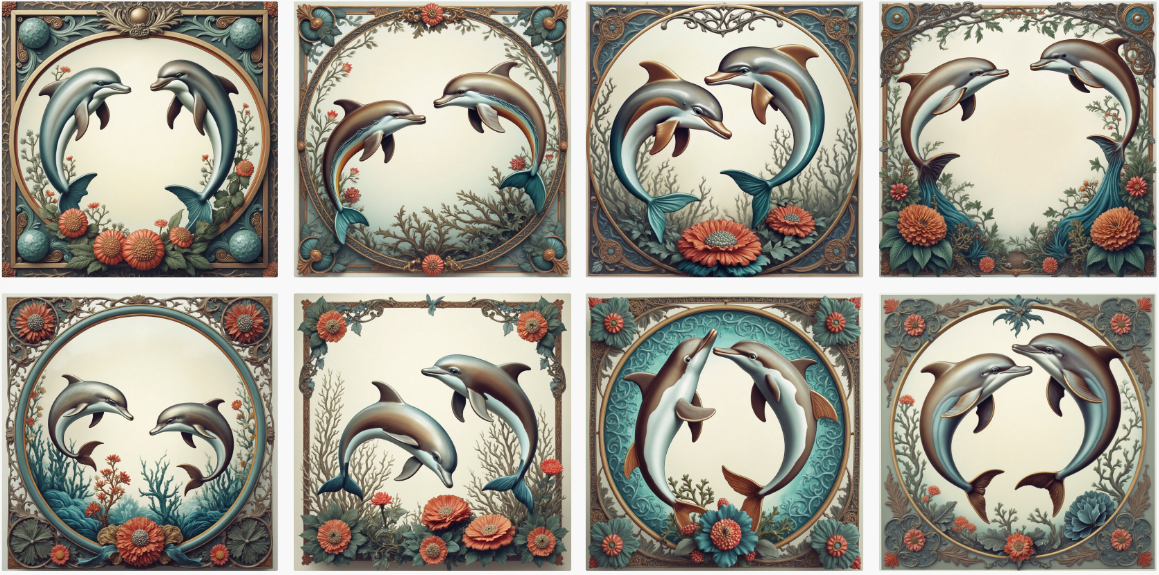 Ensemble de 8 coupons 13X13 DAUPHINS VINTAGE à coudre pour lingettes - exclusivité Nadège Tissus