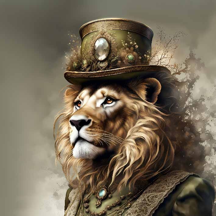 Carré LION ARISTO DE 3/4 VERT 45X45 - Velours Manille