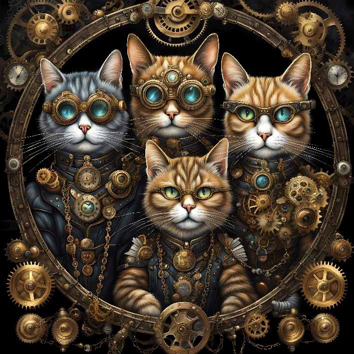Carré 4 CHATS STEAMPUNK 40X40 - polyester IMPERMEABLE