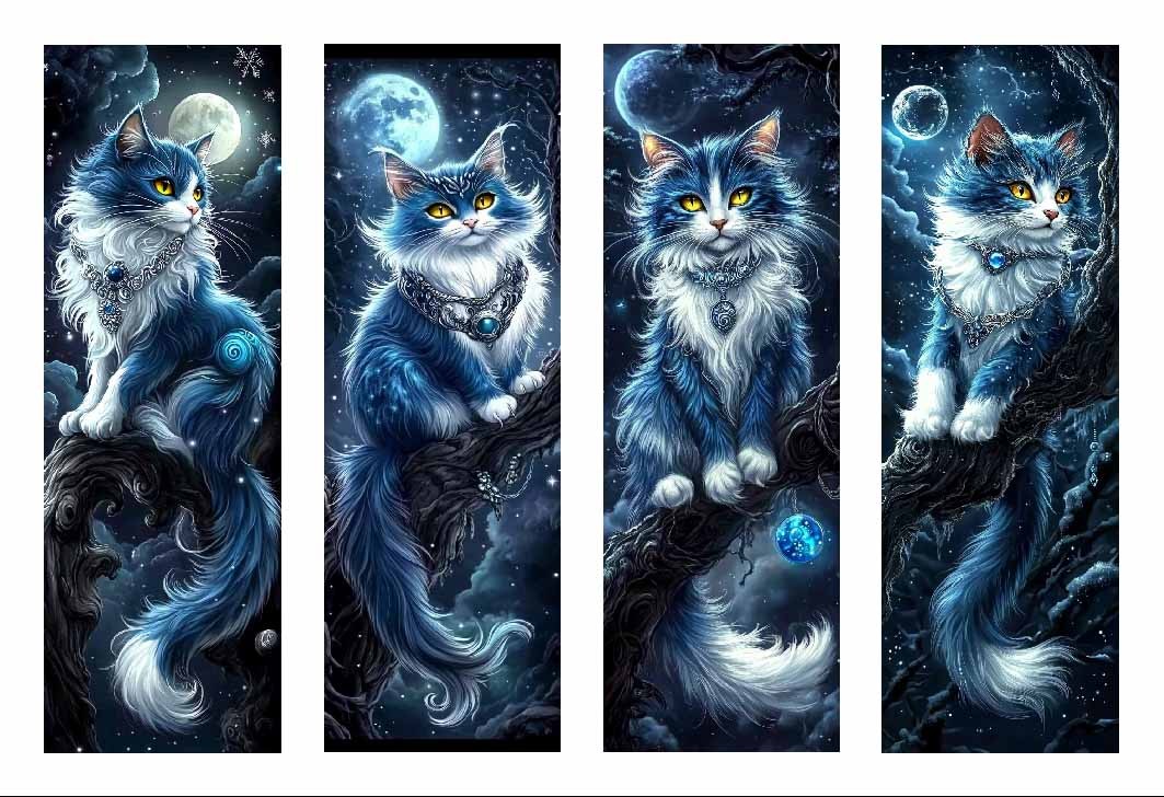 PANNEAU POUR MARQUES PAGES CHATS BLEUS BLANCS - polyester IMPERMEABLE