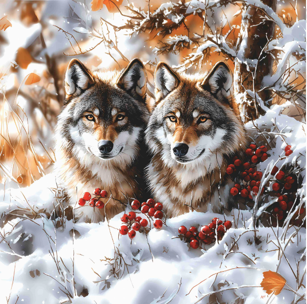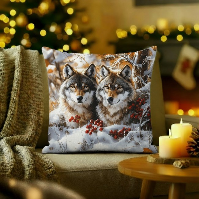 Carré COUPLE LOUPS HIVER - velours extra soft