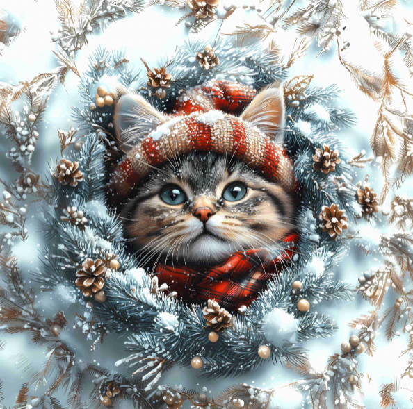 Carré CHAT COURONNE DE NOEL BLEU - velours extra soft
