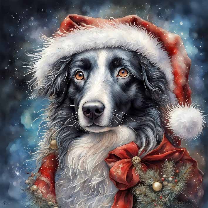 Carré BORDER COLLIE BONNET NOEL 40X40 - polyester IMPERMEABLE