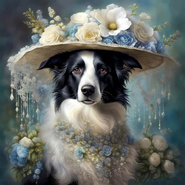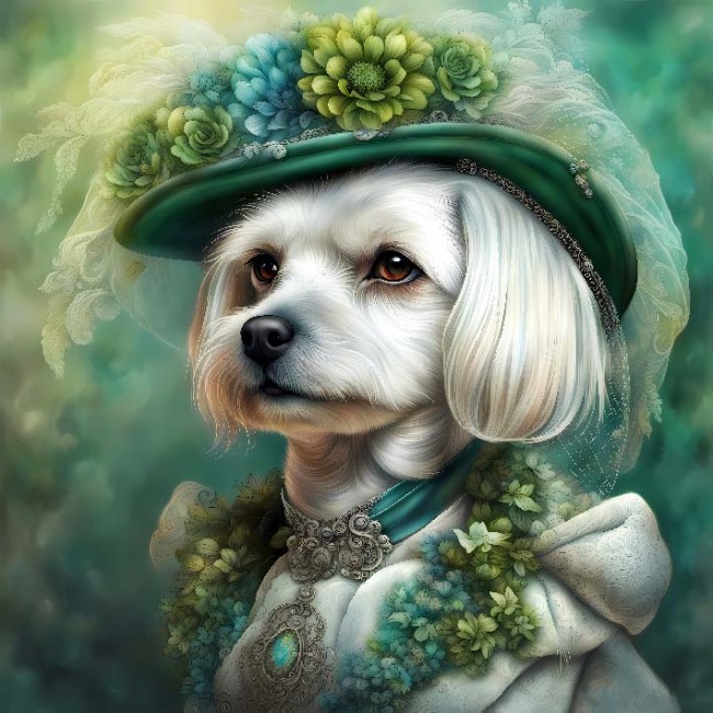 Carré SCHNAUZER CHAPEAU ET VESTE ROSES 40X40 - polyester IMPERMEABLE